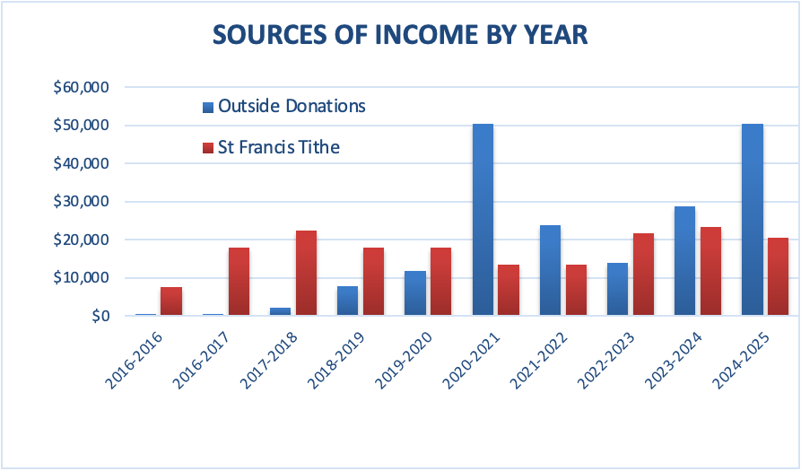 Our ministry receives a yearly grant from the parish tithe. Increasingly though we have had to depend on other sources beyond the parish tithe.  We have applied for and gotten some outside grants.  But individual donations from parishioners and others are a huge component of the support we get for our neighbors in need.